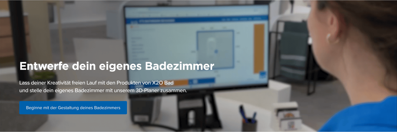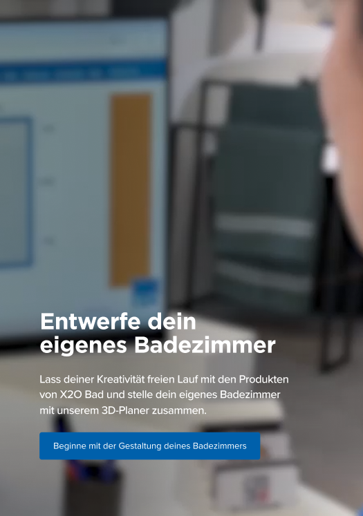 Richte deinen Badraum ein, ziehe deine Lieblingsprodukte von X2O hinein, betrachte dein Badezimmer in 3D und speichere es als Bild.