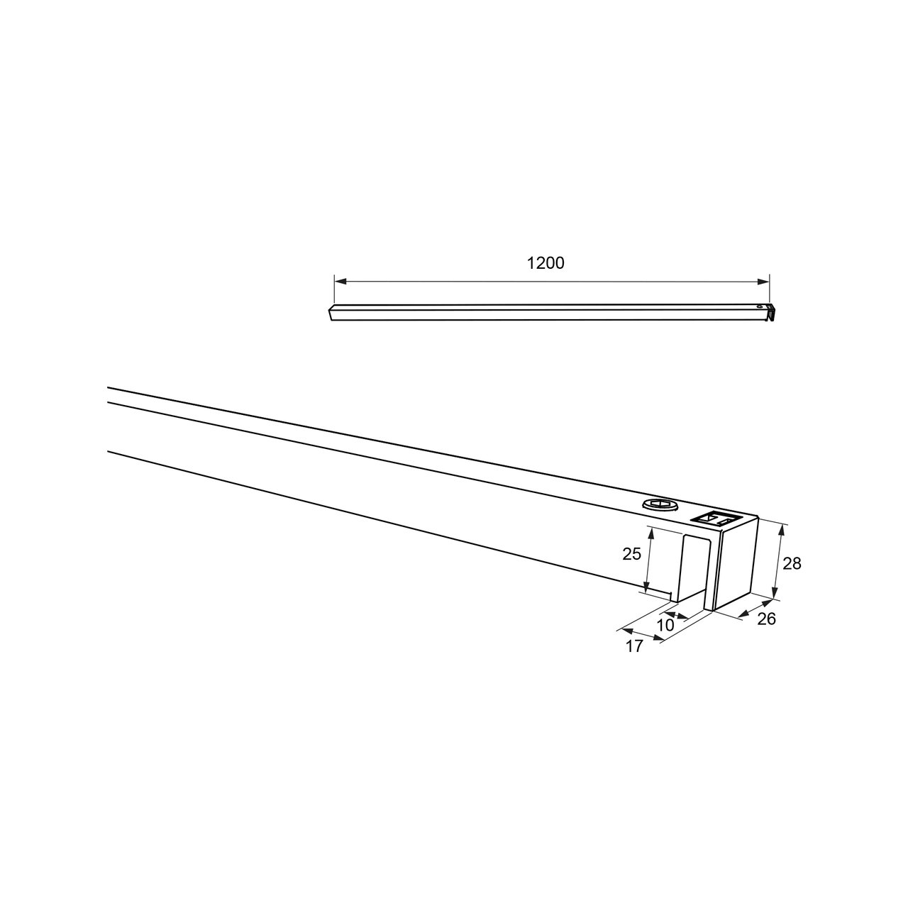 Formschöne und individuell anpassbare Stabilisierungsstange zur zusätzlichen Befestigung der Duschabtrennung an der Wand einer ebenerdigen Dusche.