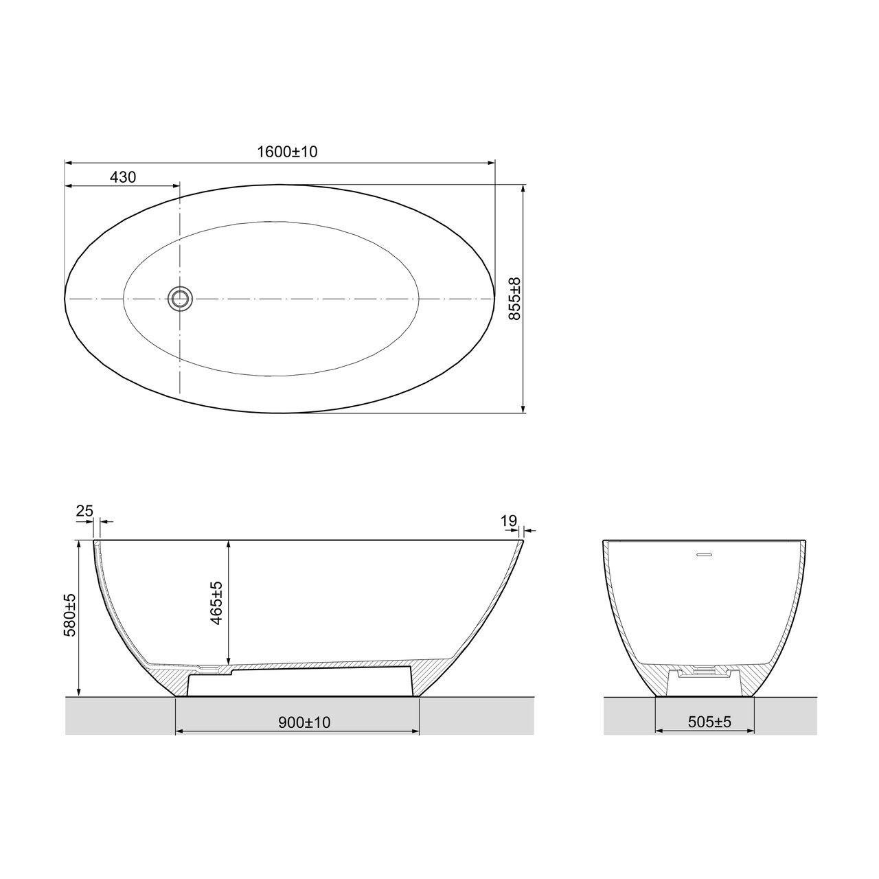 Form der Badewanne | Oval | |