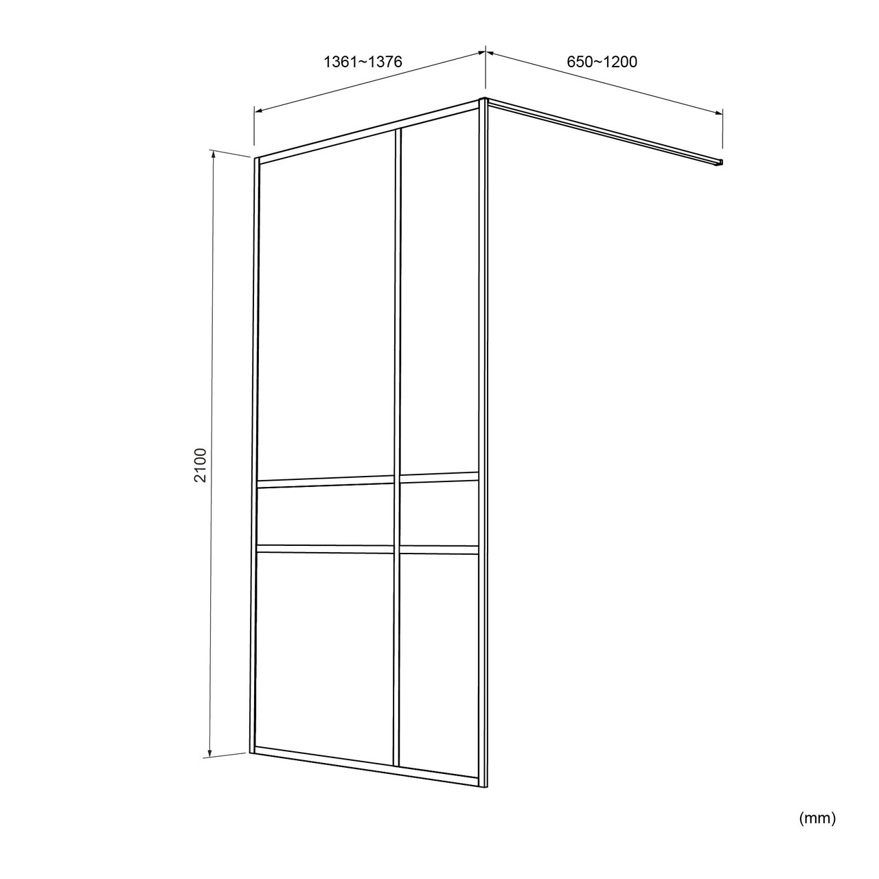 Diese Walk-In-Dusche ist 140 cm lang und 210 cm hoch. Die maximale Tiefe beträgt 120 cm.
