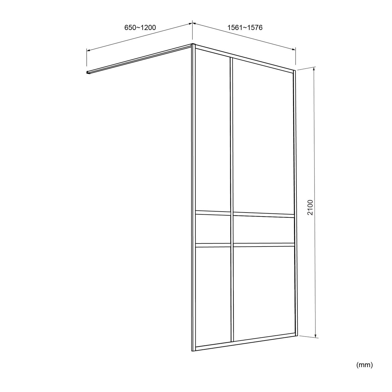 Diese Walk-In-Dusche ist 160 cm lang und 210 cm hoch. Die maximale Tiefe beträgt 120 cm.