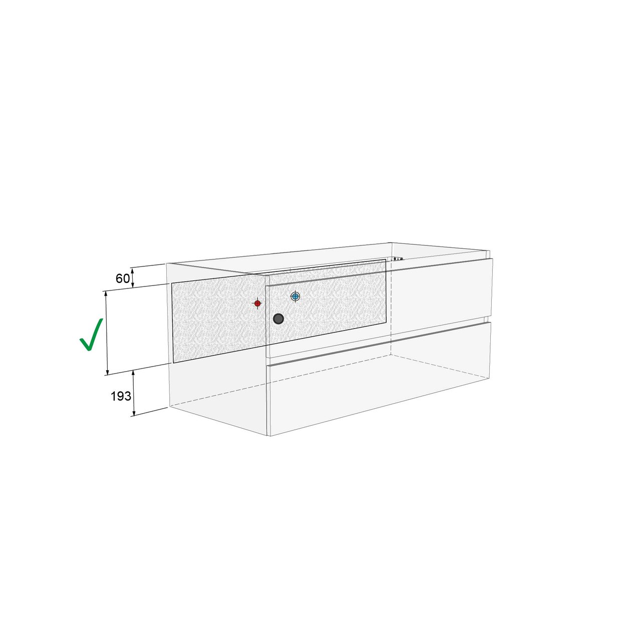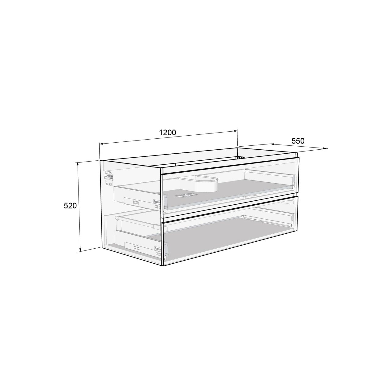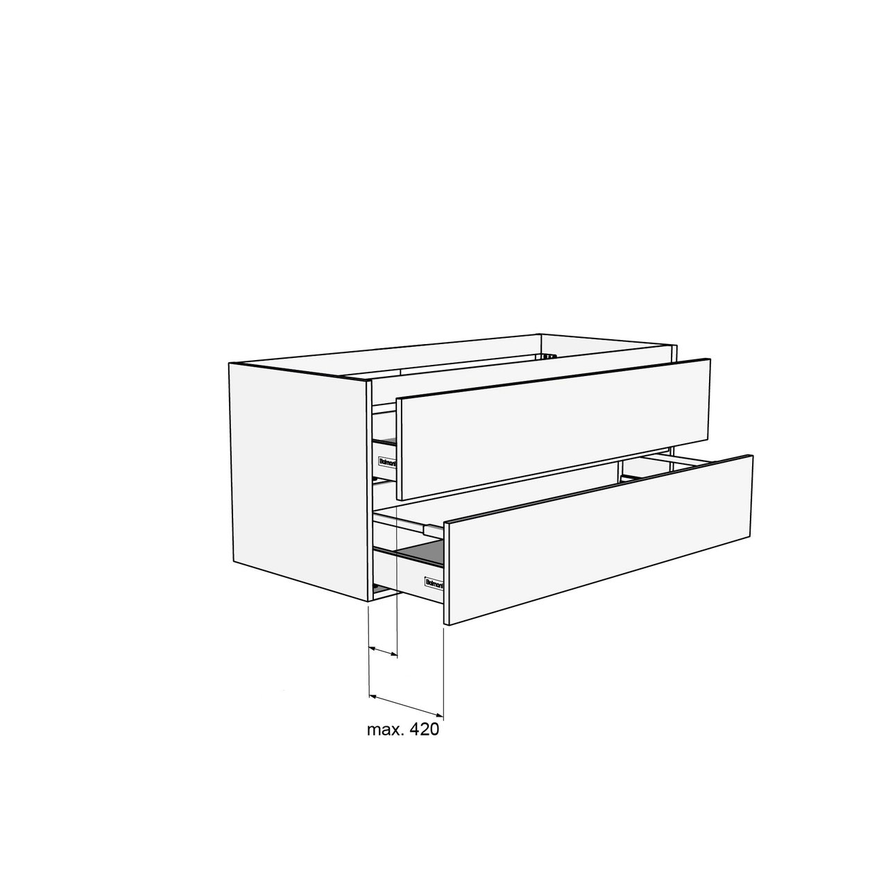 Dieser erstklassige Bad-Unterschrank aus Melamin mit 2 Schubladen ist 120 cm breit, 52 cm hoch und 55 cm tief. Dank seines geradlinigen Designs passt dieser Hängeschrank aus Teak in jedes Badezimmer.