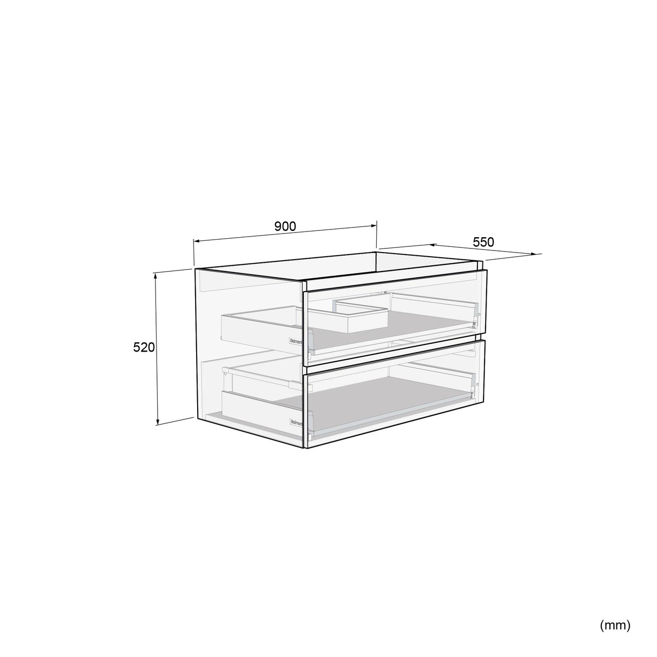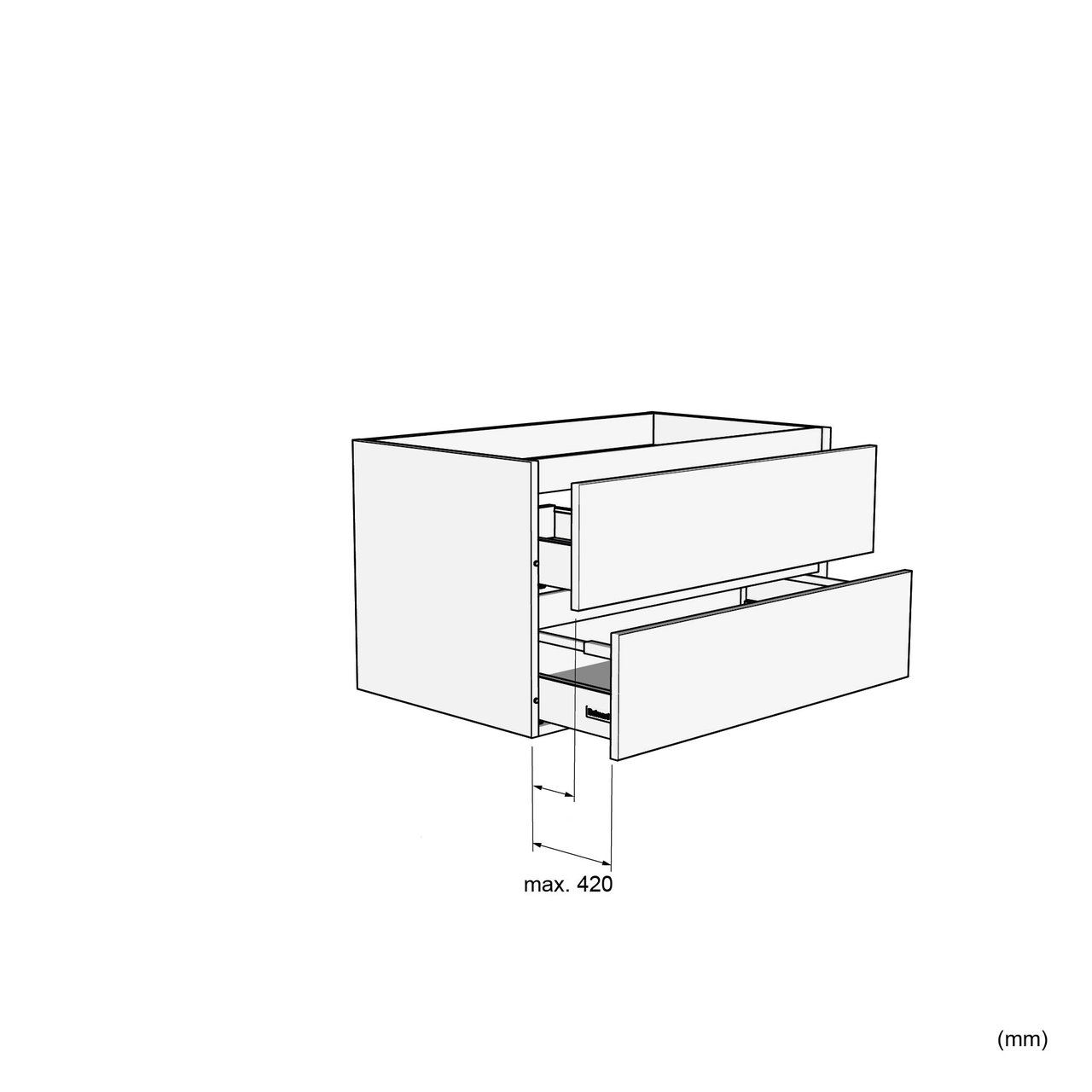 Dieser erstklassige Waschtischunterschrank aus Melamin mit 2 Schubladen ist 90 cm breit, 52 cm hoch und 55 cm tief. Dank seines geradlinigen Designs passt dieser Hängeschrank in der Ausführung Amerikanischer Nussbaum in jedes Badezimmer.