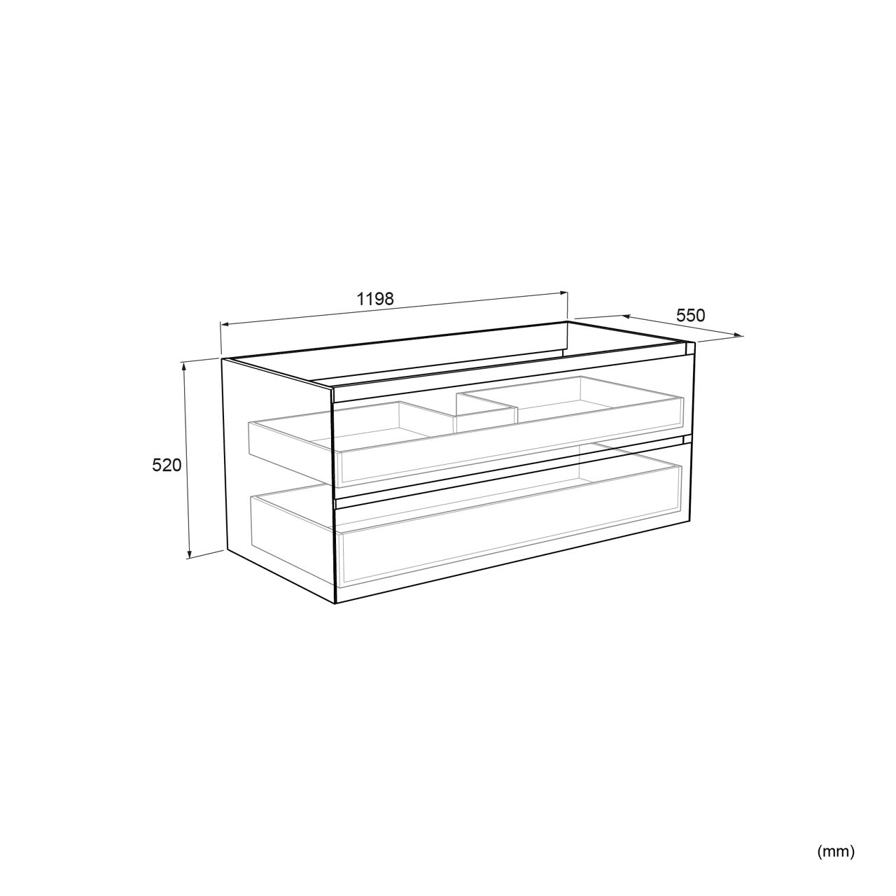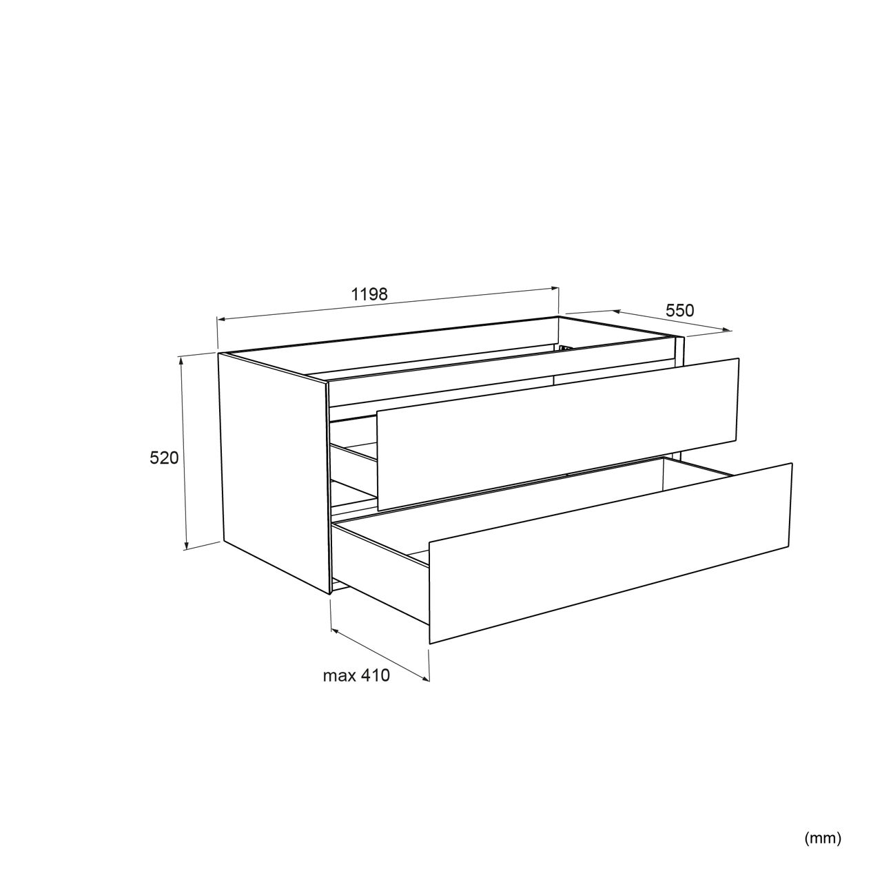 Dieser erstklassige Bad-Unterschrank aus Furnier mit 2 Schubladen ist 120 cm breit, 52 cm hoch und 55 cm tief. Dank seines geradlinigen Designs passt dieser Hängeschrank in Eiche natur in jedes Badezimmer.