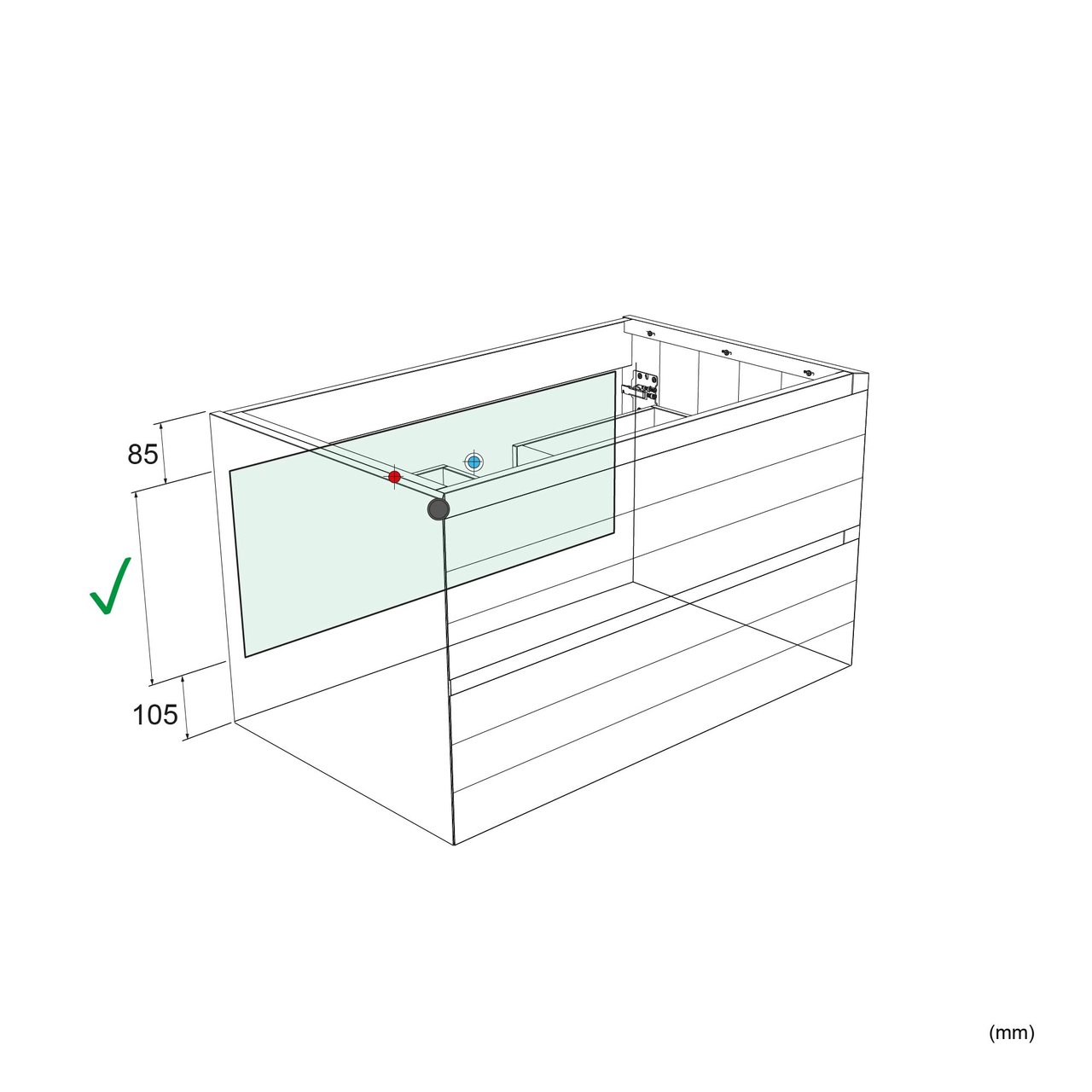 Sicherheitstipp: Für eine perfekte Installation und optimale Unterstützung des hängenden Schranks wird die Verwendung eines Unterstützungsprofils von Santeg empfohlen.