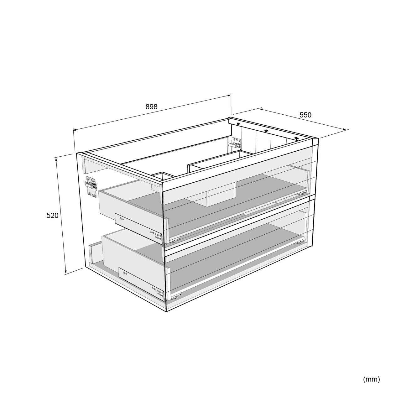 - Massivholz-Innenschubladen mit Blum-Schubladenführung und geraden Seiten, die sich mit einem einfachen Klick herausnehmen lassen. Dies sichert eine einfache, perfekte Installation und maximale Raumausnutzung.