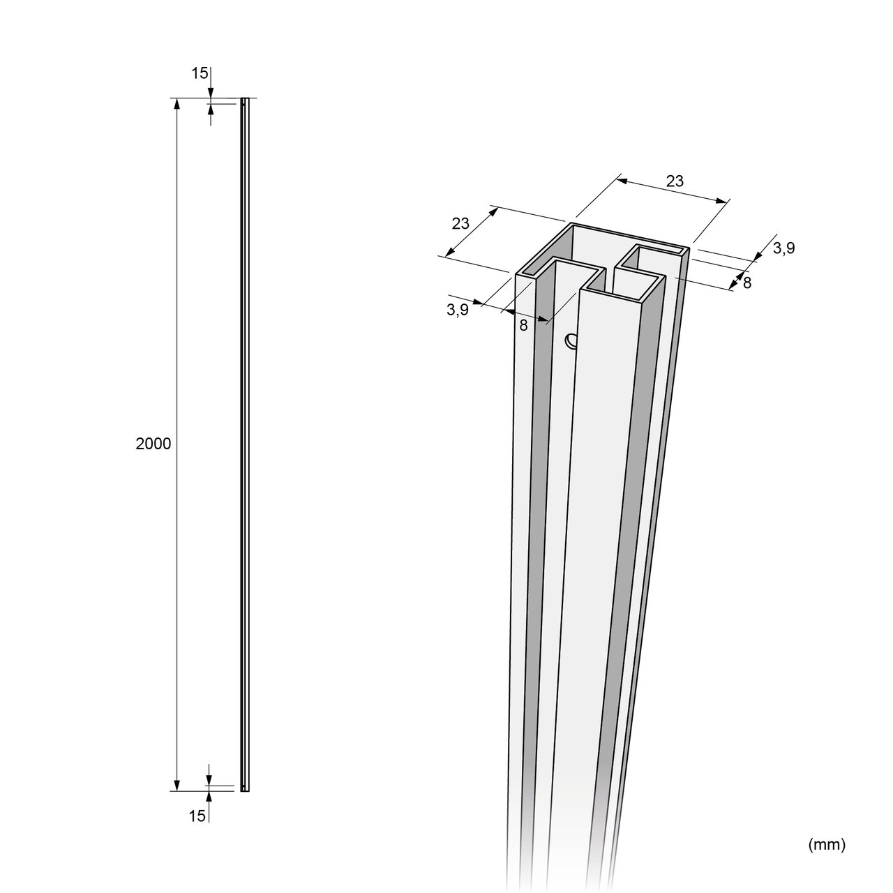 Dieses Eckprofil ist 200 cm lang und 2,3 x 2,3 cm breit.