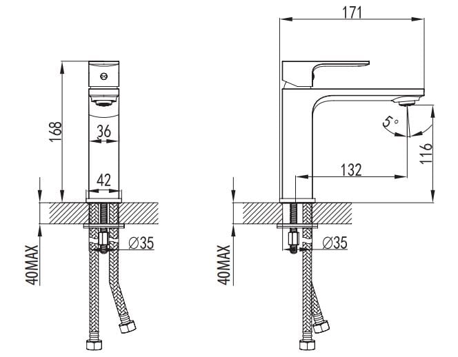 Max. Plattestärke für die Armaturinstallation | 40 mm | |
