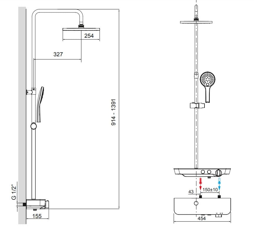 Verstellbereich der Duschstangbefestigung | 77 centimeter | |