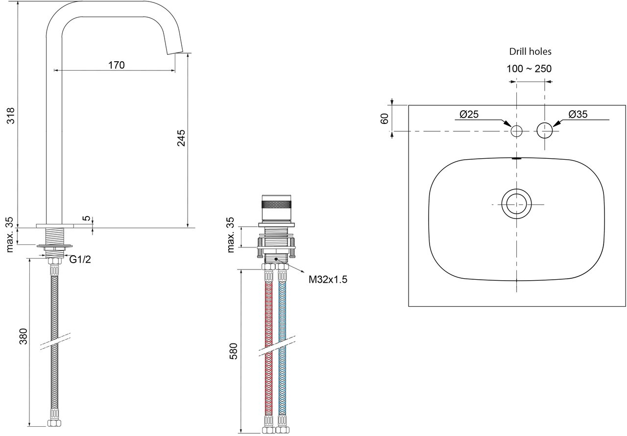 Max. Plattestärke für die Armaturinstallation | 35 mm | |
