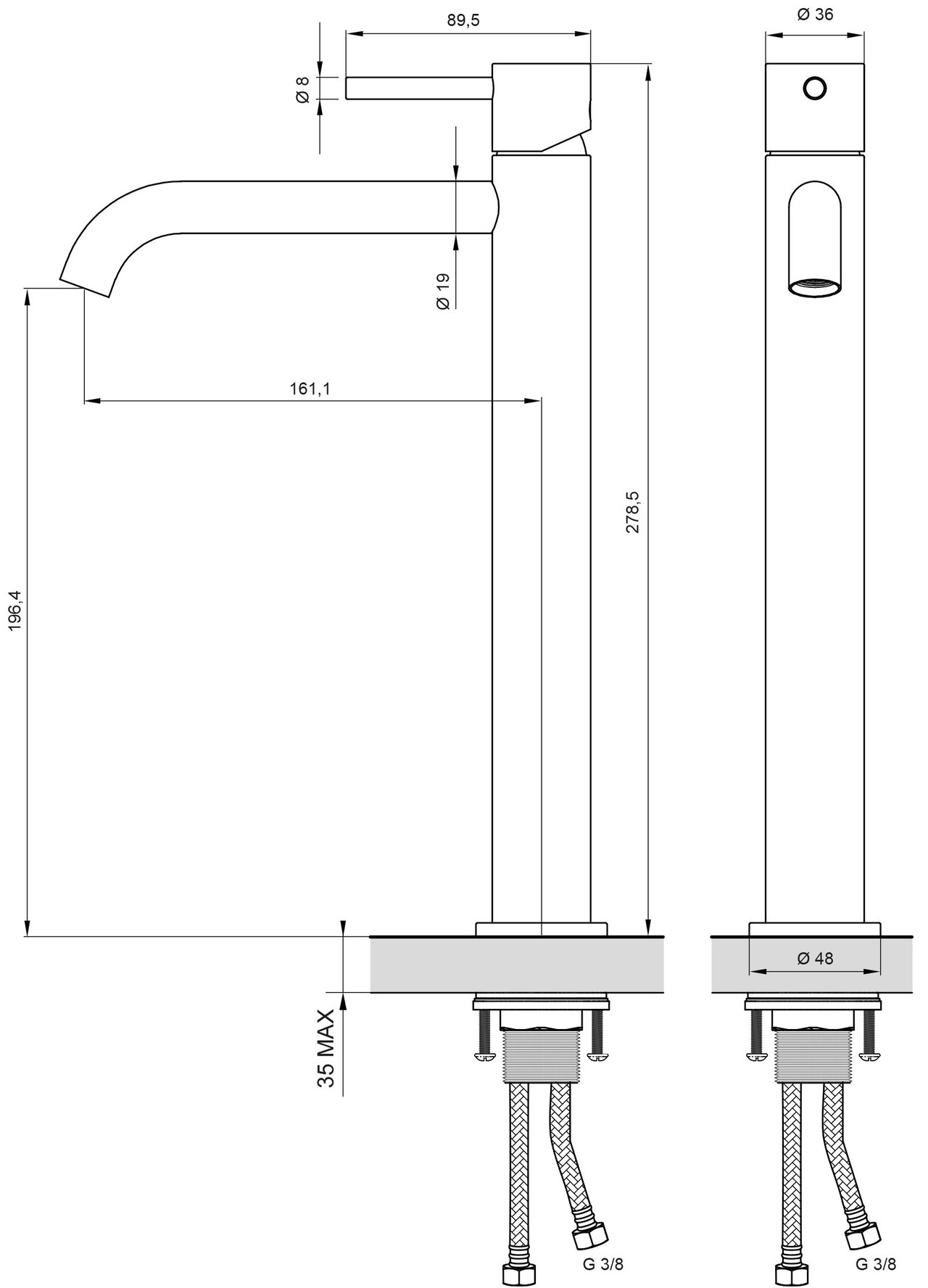 | Max. Plattestärke für die Armaturinstallation | 35 mm | |