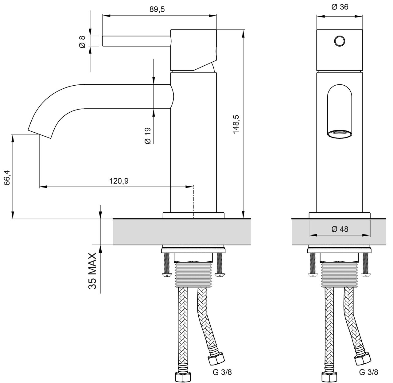 Max. Plattestärke für die Armaturinstallation | 35 mm | |