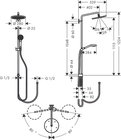 • Brausekopfgröße Kopfbrause: 280 mm