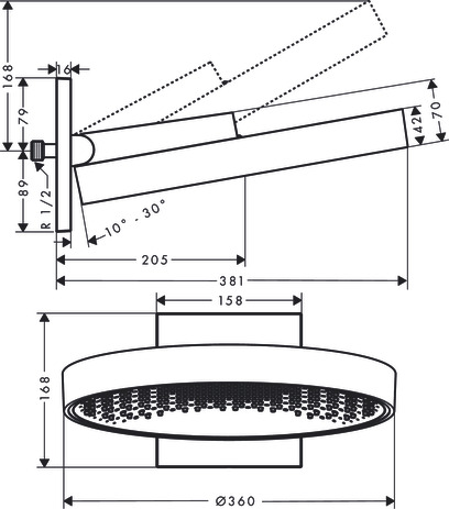 Befestigungsart Regenduschkopf | Wandmontiert | |