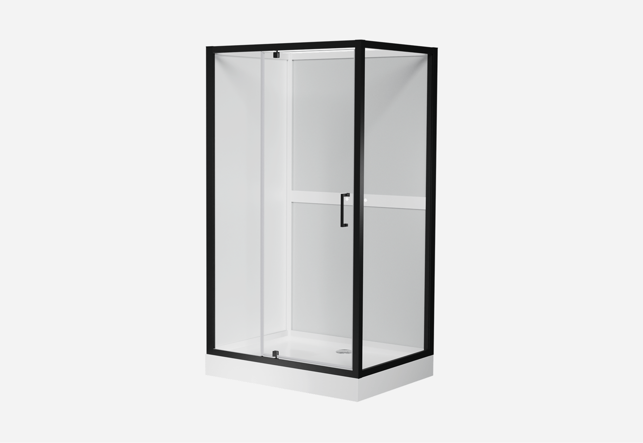 Die Kabine selbst: Sie besteht aus der Duschwanne, den Wänden und der Duschtür