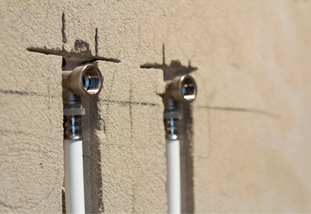 Der Wasseranschluss, also Zulauf und Ablauf