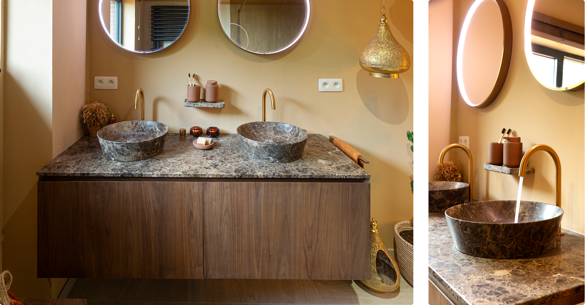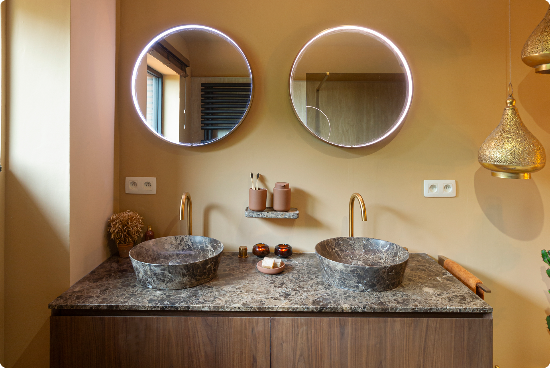Eine der beliebtesten Badezimmer-Trendfarben 2025 sind warme, neutrale Nuancen. Stell Dir einen Sonnenuntergang vor. Sandige Dünen. Terrakotta-Töpfe. Wände in warmem Beige. Genau dieses Gefühl holen diese Farben in Dein Bad.