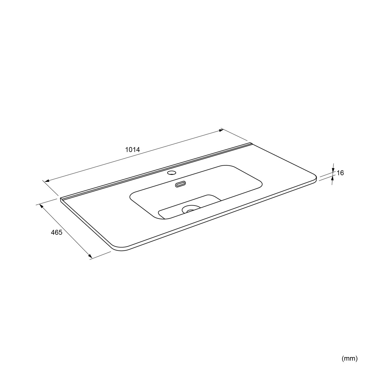Dieser Waschtisch aus Porzellan mit integriertem Aufsatzbecken ist 100 cm breit, 46 cm tief und hat eine Randhöhe von 2 cm. Dank seines eleganten Designs passt der hochglänzend weiße Waschtisch in jedes Badezimmer.