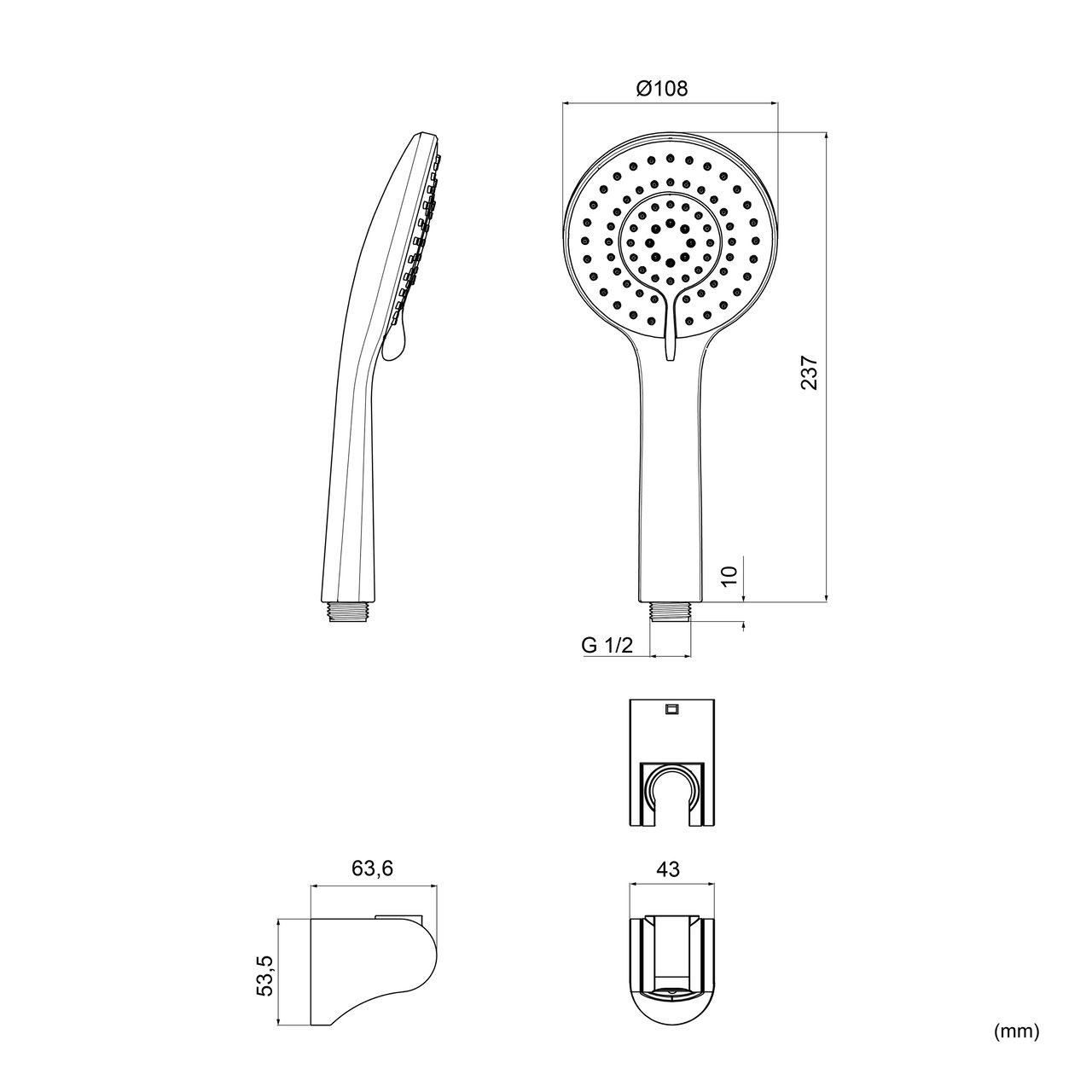 + Duschkopf mit Wassersparfunktion: verbraucht weniger Wasser, spart Energie und sorgt dennoch für einen kräftigen, konstanten Wasserstrahl.