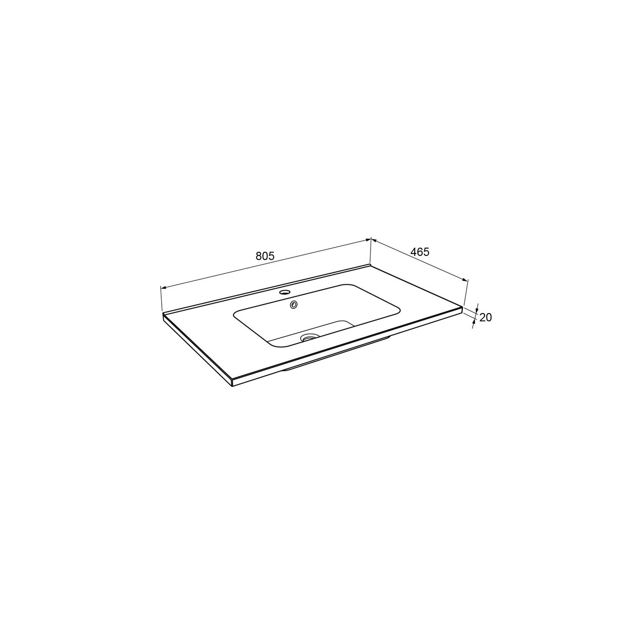 Dieser Waschtisch aus Komposit mit integriertem Aufsatzbecken ist 80 cm breit, 46 cm tief und hat eine Randhöhe von 2 cm. Dieser matt weiße Waschtisch zeichnet sich durch ein minimalistisch-zeitgemäßes Design aus, mit dem er sich nahtlos in jedes Badezimmer einfügt.