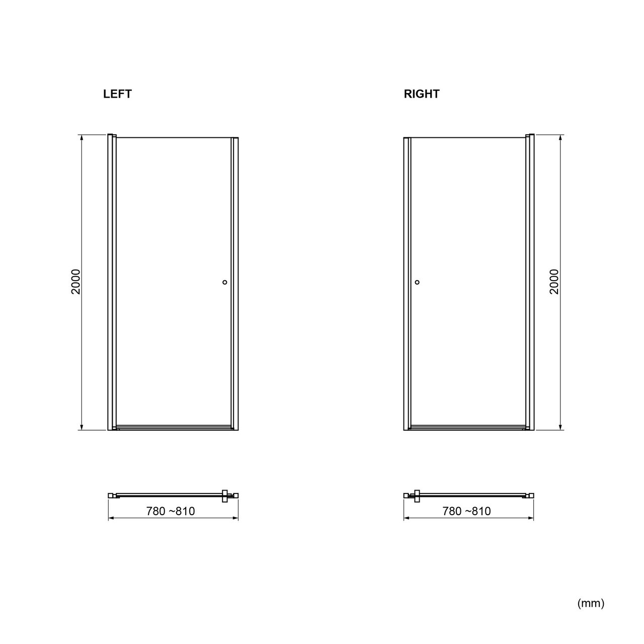 Diese Duschtür ist 80 cm breit und 200 cm hoch.