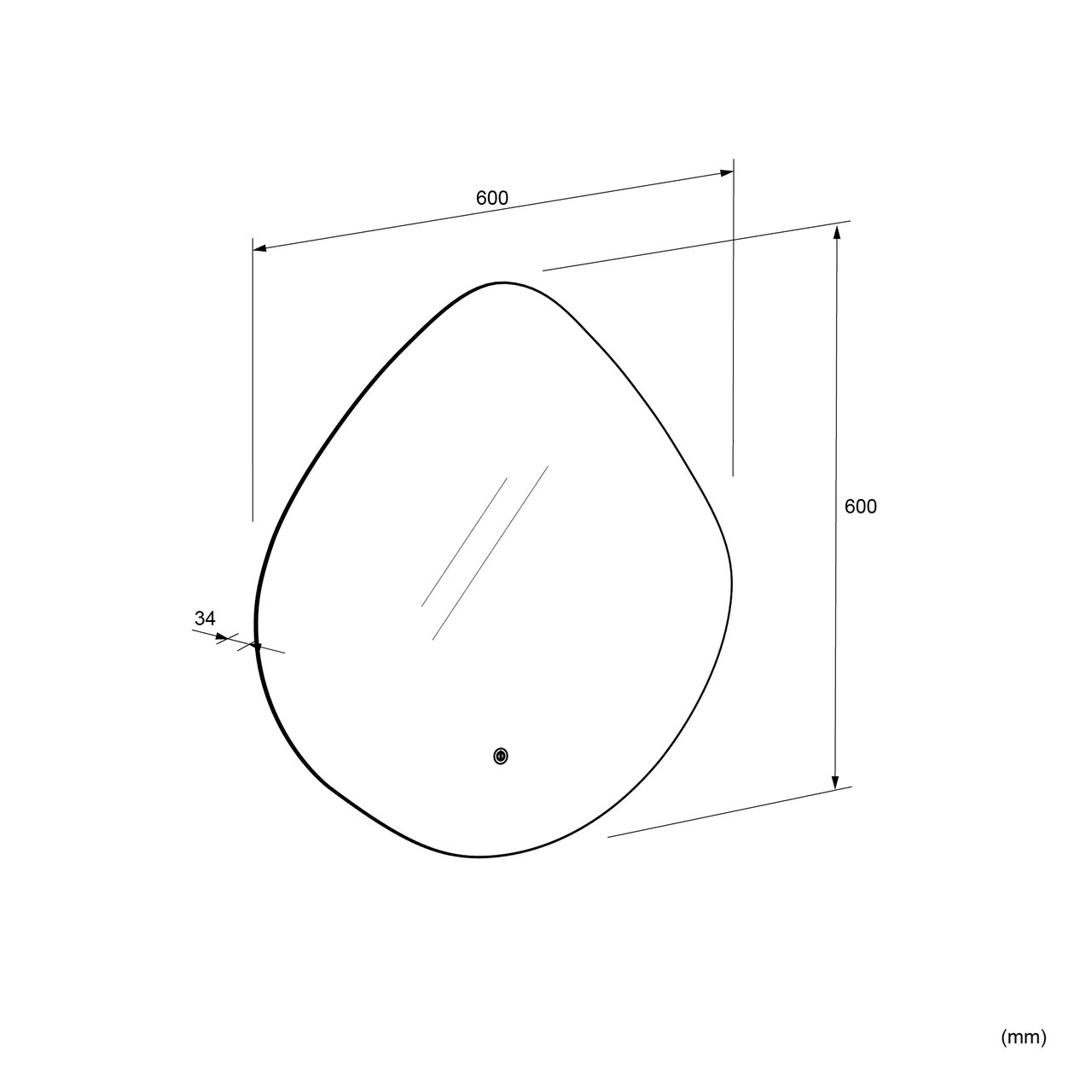 Dieser organische Spiegel hat eine Breite von 60 cm und eine Höhe von 60 cm. Der Luca Varess Spiegel passt dank seiner geradlinige Ausstrahlung in jedes Badezimmer.