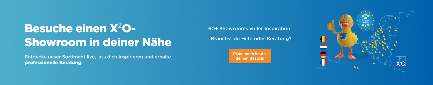 Suchst du ein neues komplettes Badezimmer oder möchtest du dein aktuelles Bad renovieren? Bei X²O Badezimmer findest du eine große Auswahl an Sanitärartikeln und Badezimmermöbeln, die zu jedem Stil und Budget passen. Lass dich in unseren Showrooms inspirieren und entdecke die Möglichkeiten für dein Traumbad. X²O, der Badezimmerexperte, ist in Belgien, den Niederlanden, Frankreich und Deutschland vertreten – mit über 60 Badausstellungen. So findest du immer ein X²O-Badezimmerausstellung in deiner Nähe.