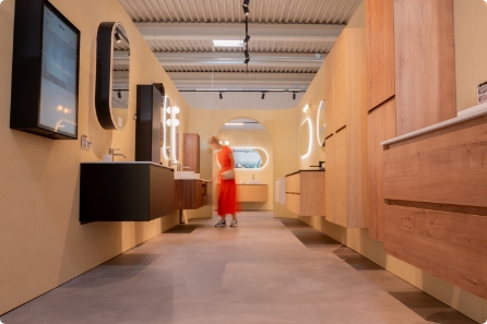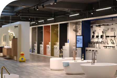 Tauchen Sie ein in das Badezimmererlebnis! Entdecken Sie zahlreiche Produkte, Farben und Texturen in unseren Showrooms. Natürlich sind Sie nicht allein – unsere Badspezialisten in Düsseldorf stehen Ihnen jederzeit zur Verfügung, um Sie während Ihres Einkaufserlebnisses persönlich zu beraten.