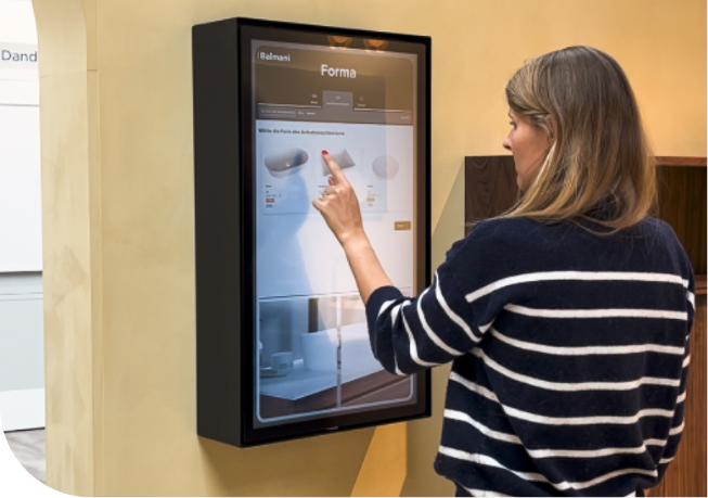 Mit innovativen Touchscreens kannst du deine neuen Badmöbel individuell zusammenstellen, gestalten und direkt bestellen. Die Bedienung der Bildschirme ist für alle einfach und intuitiv.