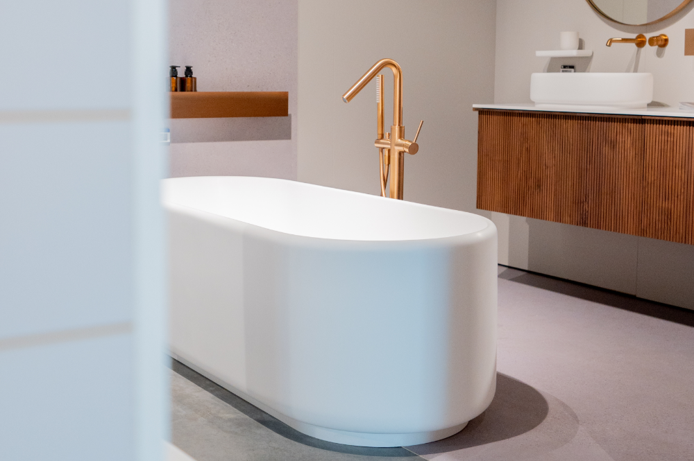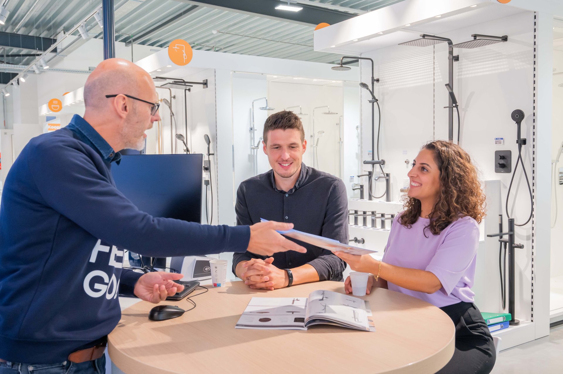 Tauche ein in das Badezimmererlebnis! Entdecke zahlreiche Produkte, Farben und Texturen in unseren Showrooms. Natürlich bist du nicht allein – unsere Badspezialisten in Mülheim stehen dir jederzeit zur Verfügung und beraten dich gerne persönlich während deines Einkaufserlebnisses.