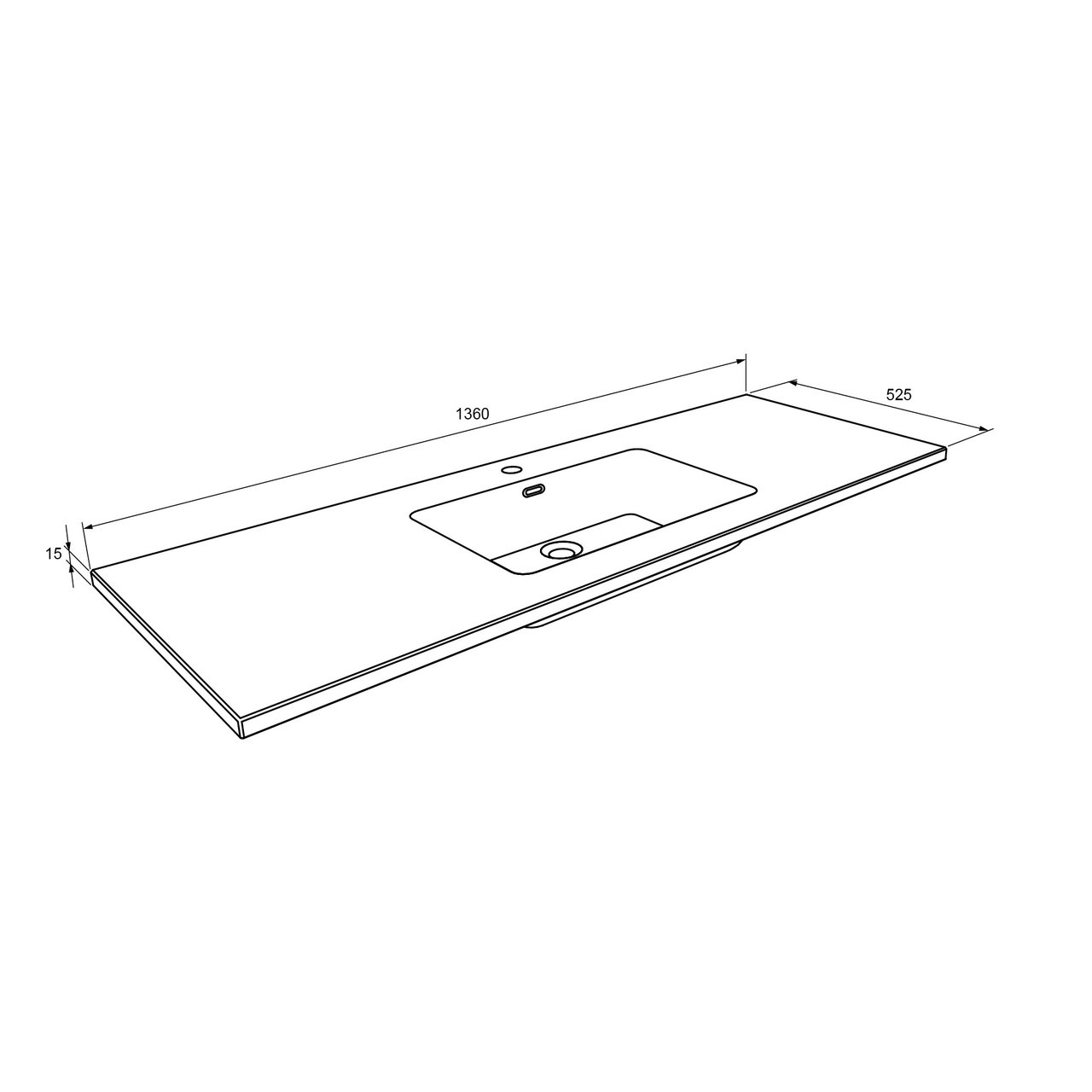 Dieser Waschtisch aus Marmorkomposit mit integriertem Aufsatzbecken ist 135 cm breit, 52 cm tief und hat eine Randhöhe von 1,5 cm. Dieser glänzend weiße Waschtisch zeichnet sich durch ein minimalistisch-zeitgemäßes Design aus, mit dem er sich nahtlos in jedes Badezimmer einfügt.