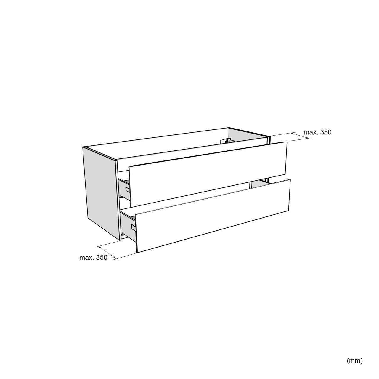 Dieser Bad-Unterschrank aus Melamin mit 2 Schubladen ist 120 cm breit, 48 cm hoch und 46 cm tief. Dank seiner eleganten Verarbeitung passt der Hängeschrank in Eiche roh in jedes Badezimmer.