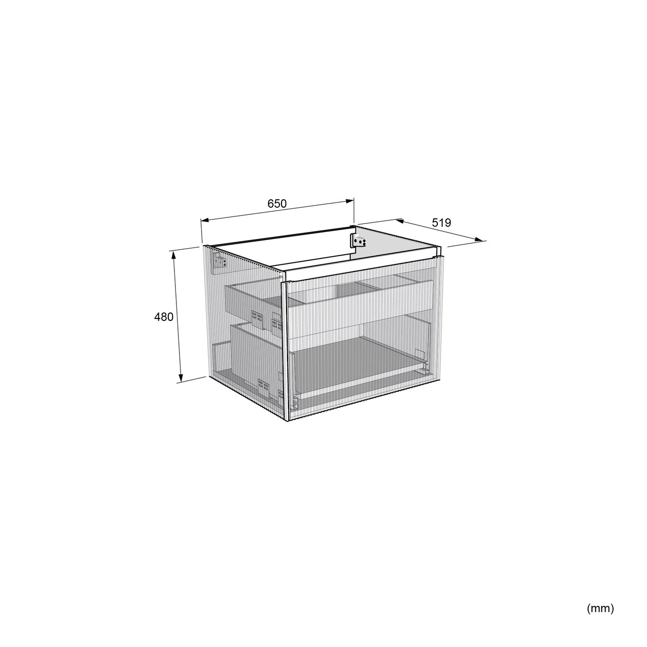 Dieser Bad-Unterschrank mit MDF mit PVC-Folie ist 65 cm breit, 48 cm hoch und 52 cm tief. Durch sein geradliniges Design passt dieser hängende Schrank in Eiche Rauch in jedes Badezimmer.