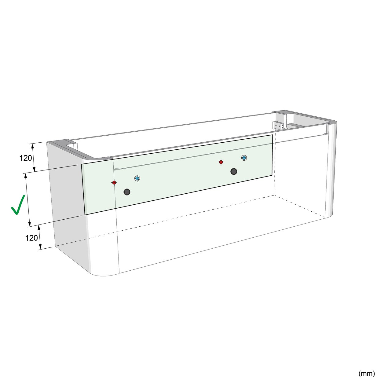 Sicherheitstipp: Für eine perfekte Installation und optimale Unterstützung des Hängeschranks wird die Verwendung eines Santeg Stützprofils